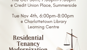 The following public consultations on the proposed amendments to the Residential Tenancy Act have been scheduled. All welcome! Tuesday September 2, 2025: 7:00pm to 9:00pm @ Credit Union Place, 511 Notre Dame Street, Summerside Wednesday September 3, … [Read More]